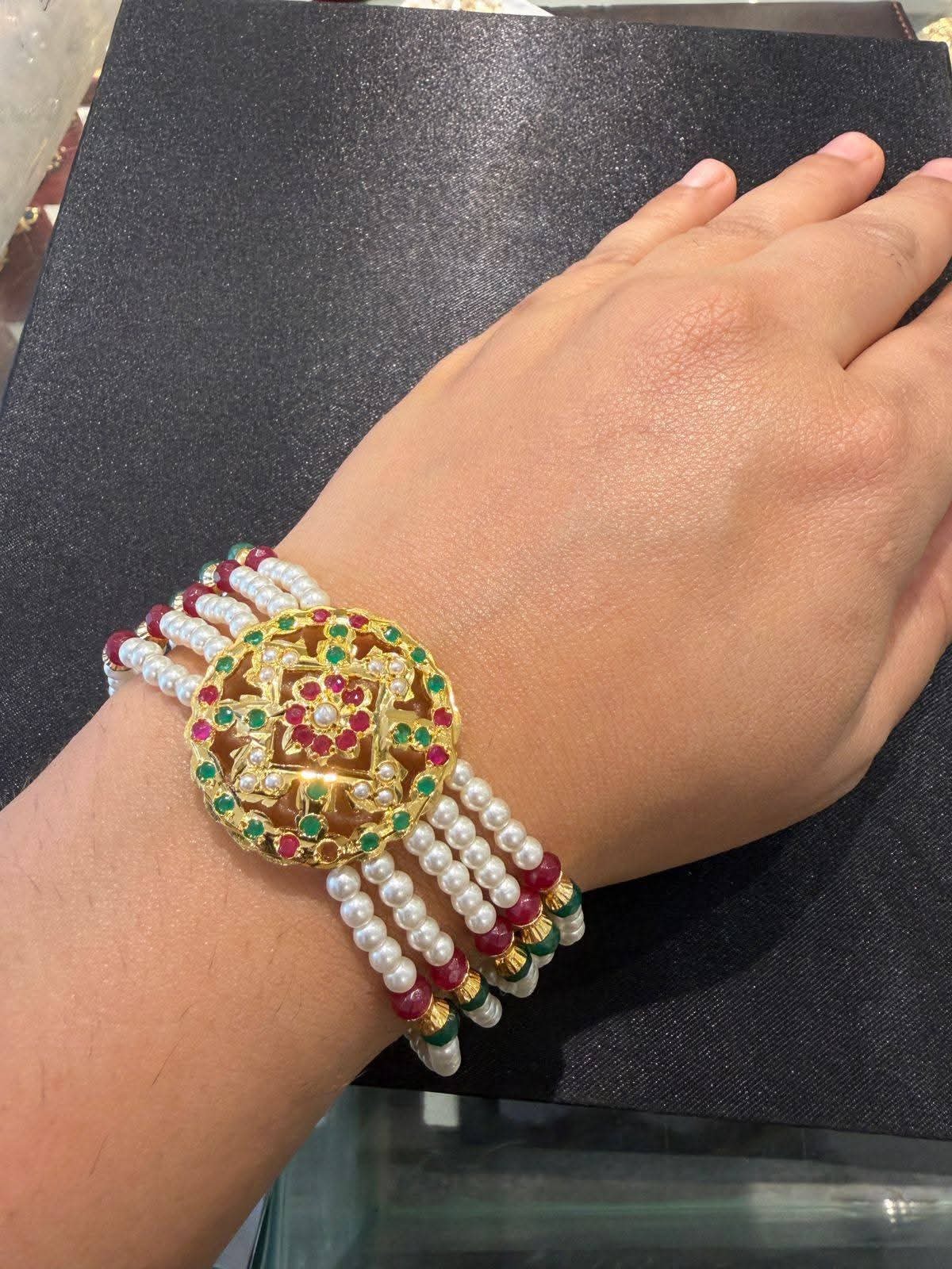 Designer jadau bracelet With Ruby & Green Stones