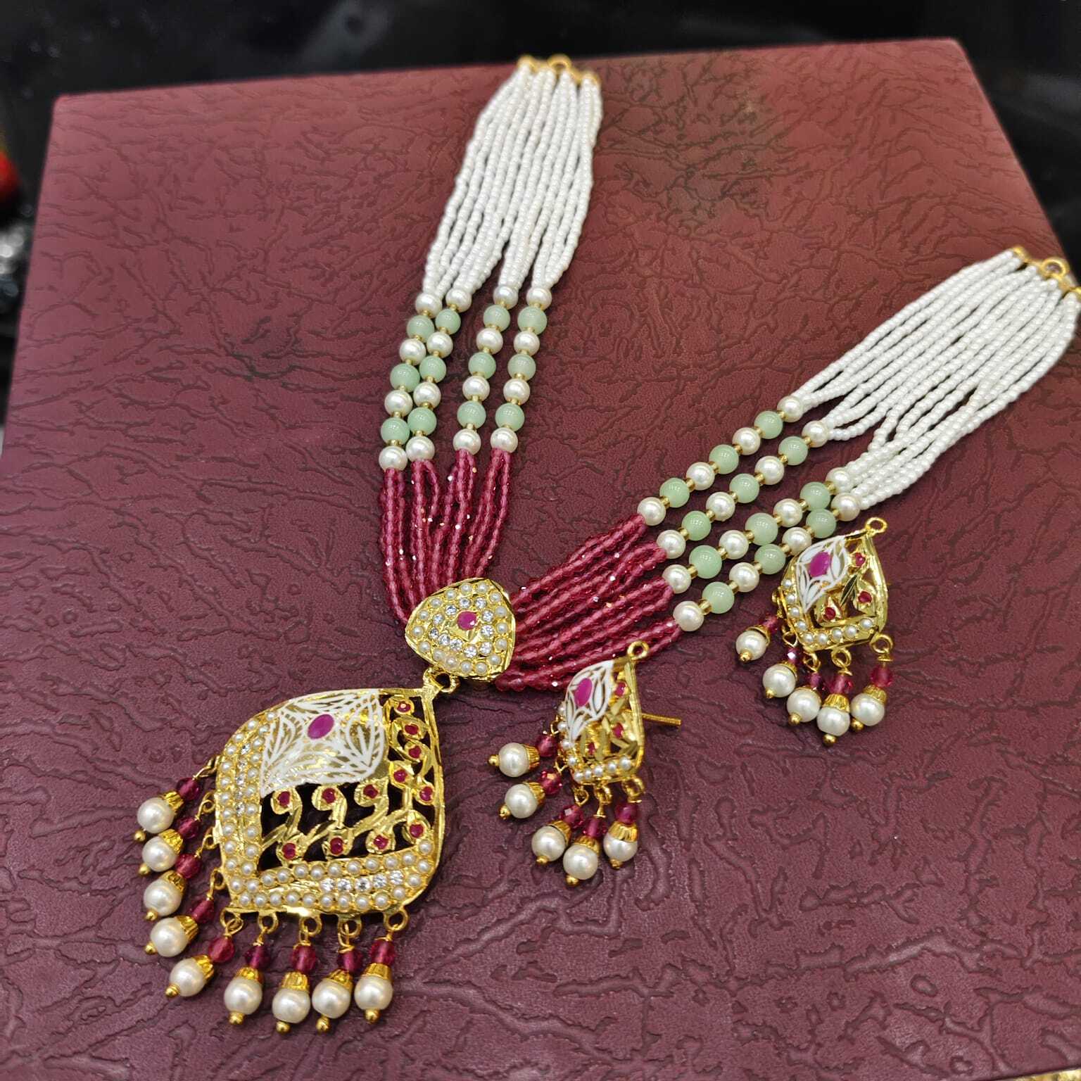 Buy Exclusive Original Look Gold Plated Ruby White Necklace With Classic Earrings For Traditional Look/shrisahibjewellers