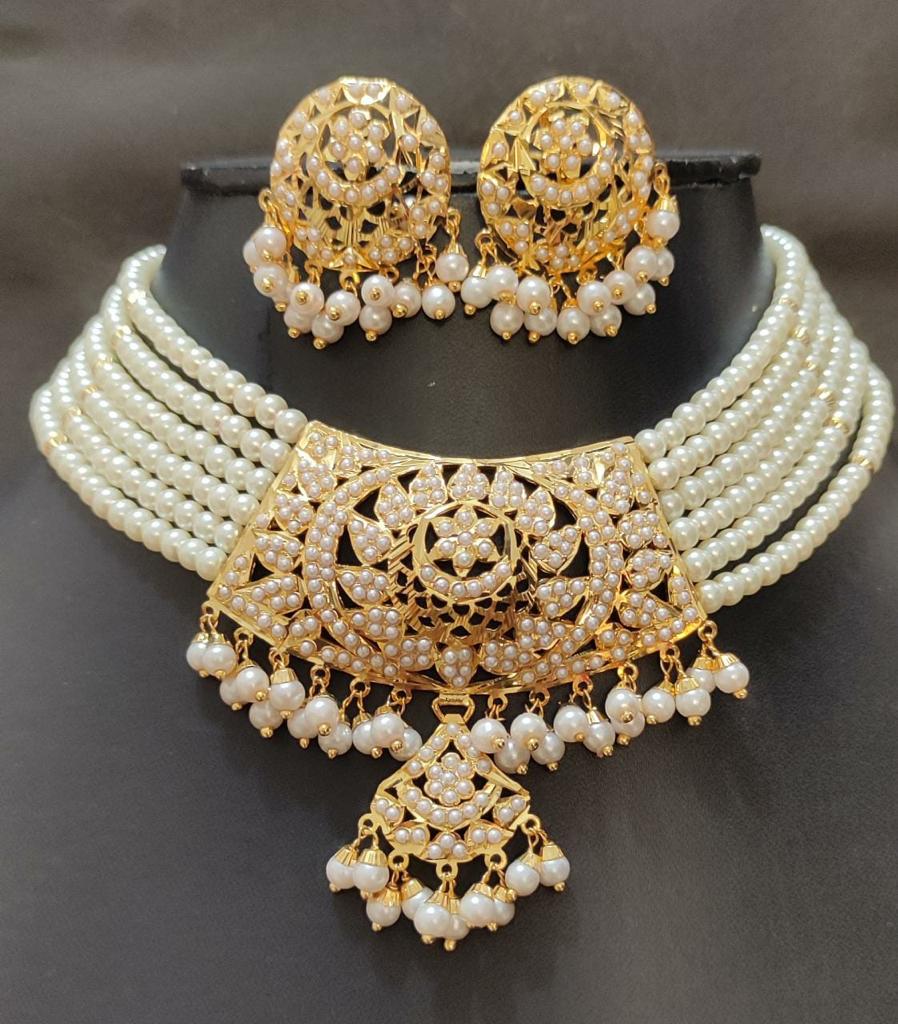 Buy Traditional Punjabi Look Laminated Pearl Jadau Necklace With Beautiful Earrings
