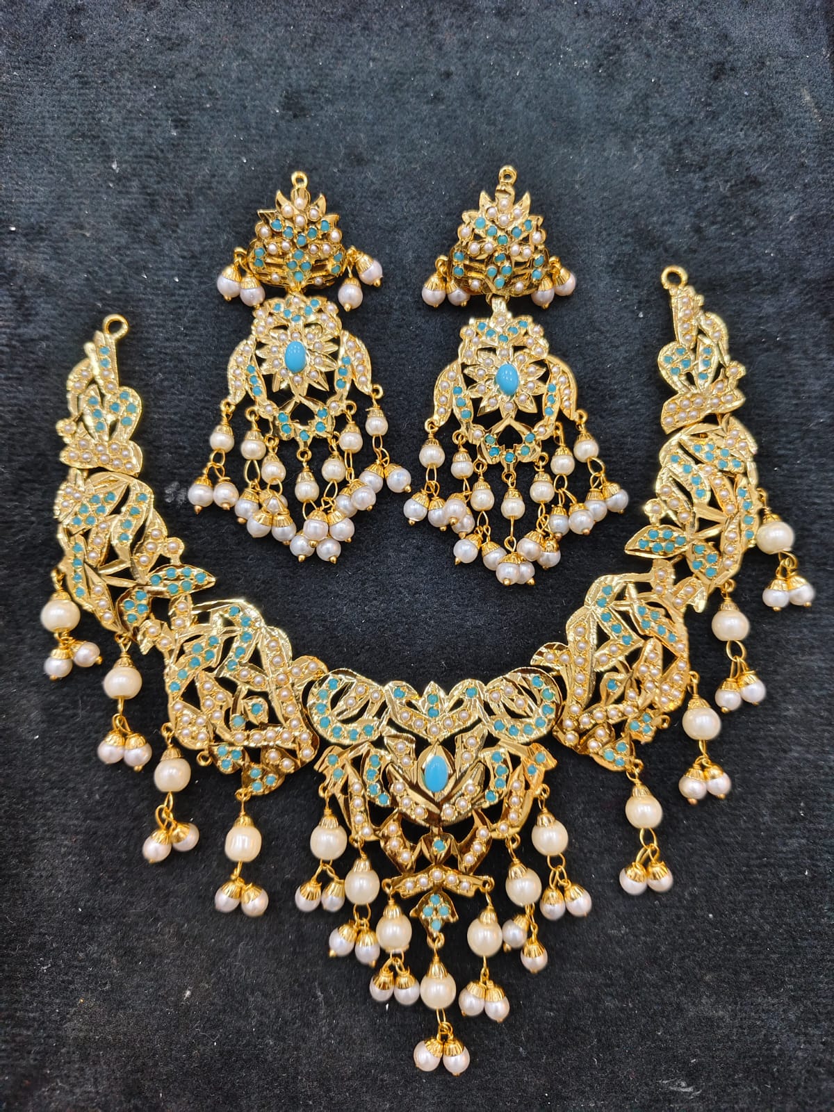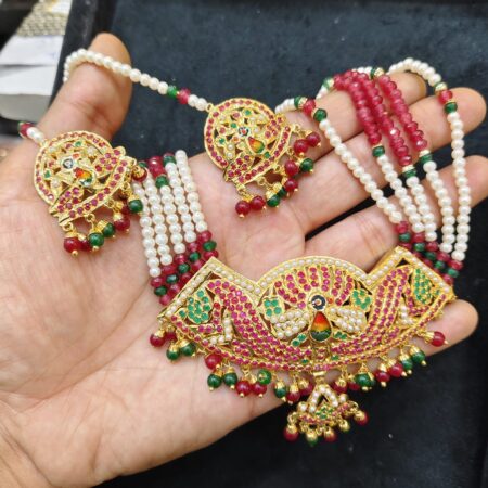 Be the first to review “Buy Traditional Punjabi Look Laminated Pearl Jadau Necklace With Beautiful Earrings” Cancel reply