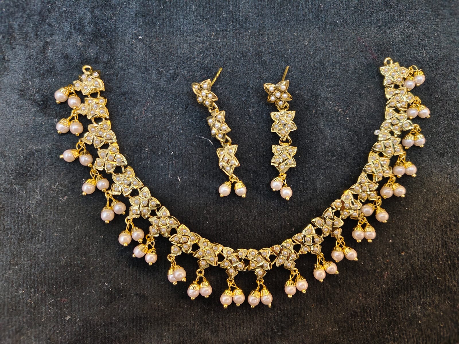 In StockTraditionally Gold Plated Punjabi Jadau Pearl Necklace Set With Beautiful Earrings, This Look is Really Original, Premium Quality & Repolishable Jewellery.