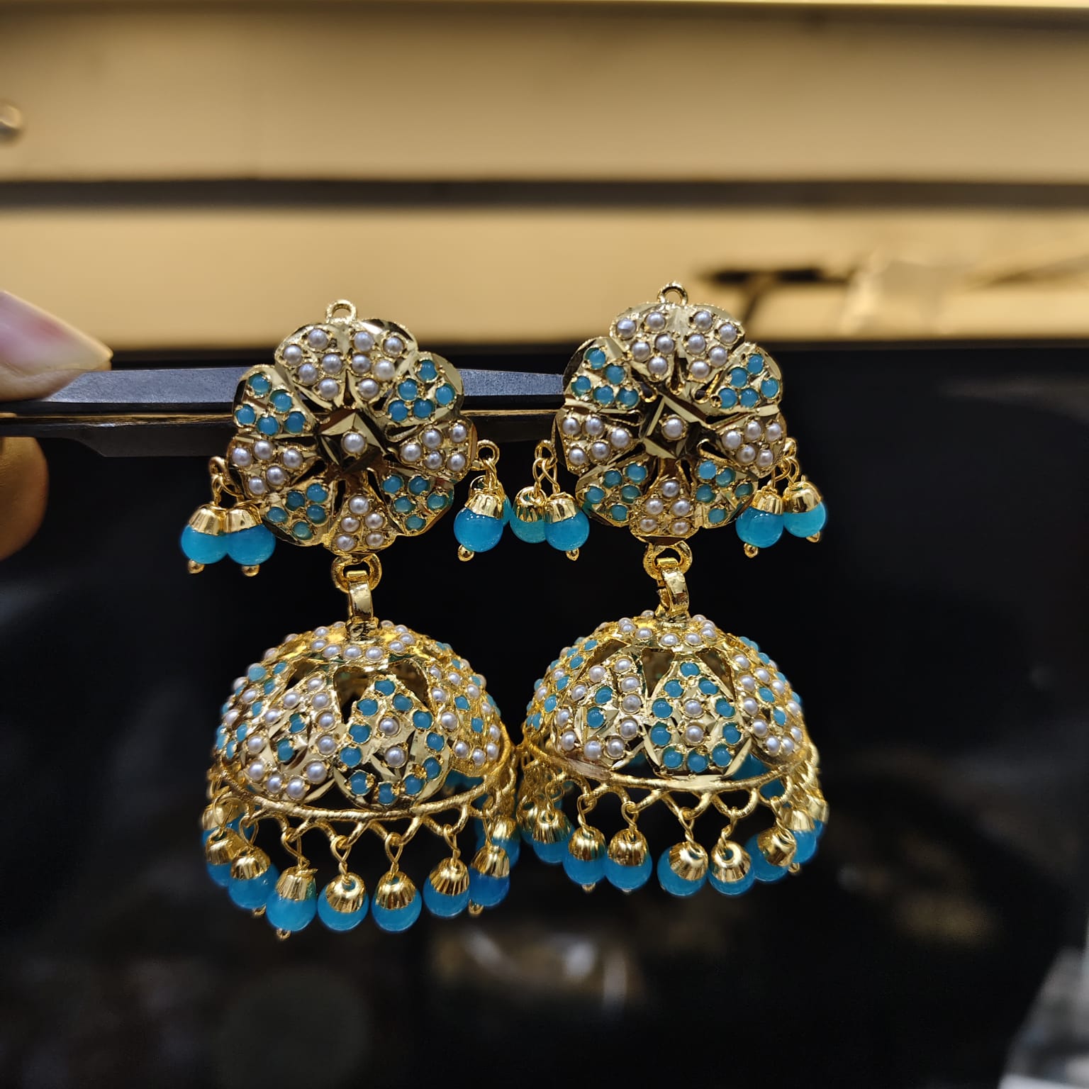 As direct manufacturers of premium Punjabi Jadau jewelry, we bring authentic handmade designs to life. These Firozi White Jadau Jhumkas are a perfect mix of tradition and elegance, ideal for those who appreciate quality, detail, and timeless beauty.