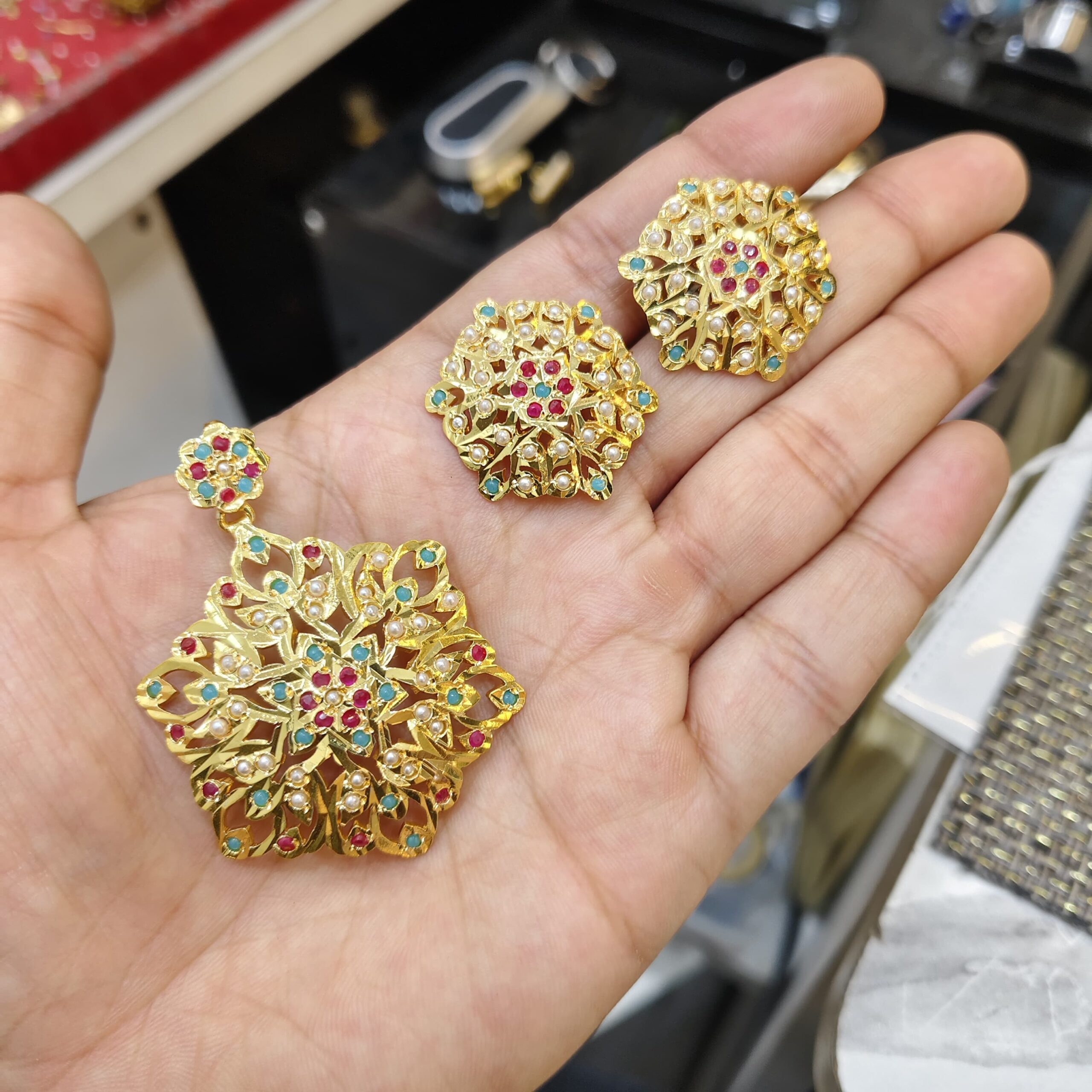 Be the first to review “Gold Plated Jadau Pendant Set” Cancel reply