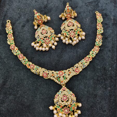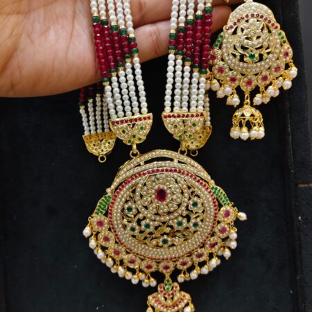 Whether you’re dressing for a wedding, pre-wedding function, or cultural celebration, this Lightweight Pearl Jadau Necklace Set will give your look an effortlessly royal finish—without weighing you down.