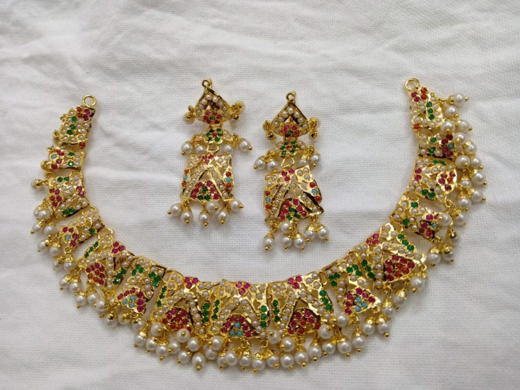 Navratan Jadau Necklace Set – Multi-Stone Jewelry