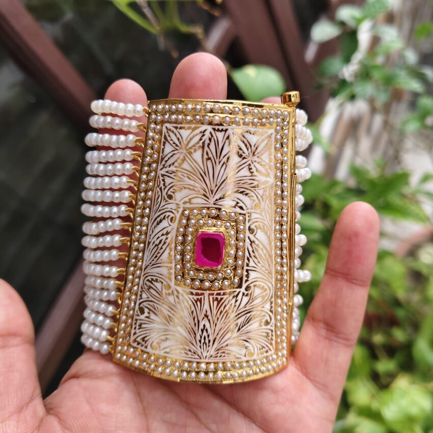 Whether you’re a bride looking for a graceful accessory or someone who appreciates traditional artistry, these Pearl Jadau Handcuffs are an exquisite statement of culture, elegance, and sophistication.