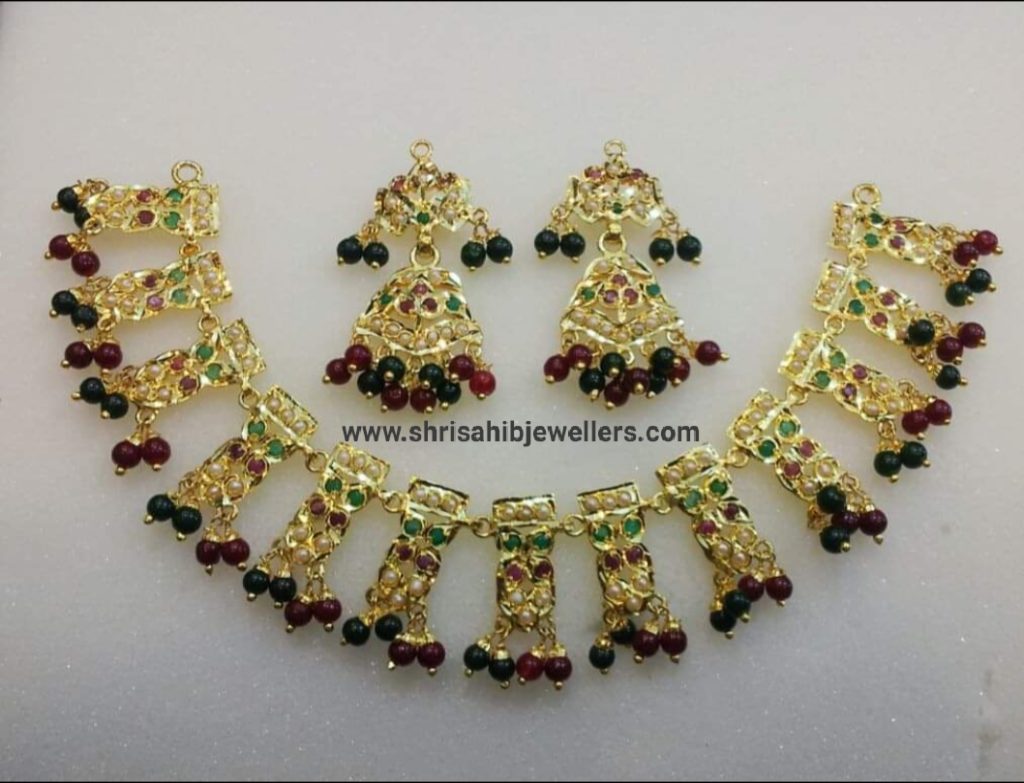 Navratan Jadau Necklace Set – Multi-Stone Jewelry